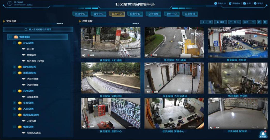 值守中心连接平台配置的项目空间、场景和智能设备,空间事件信息将实时汇聚。