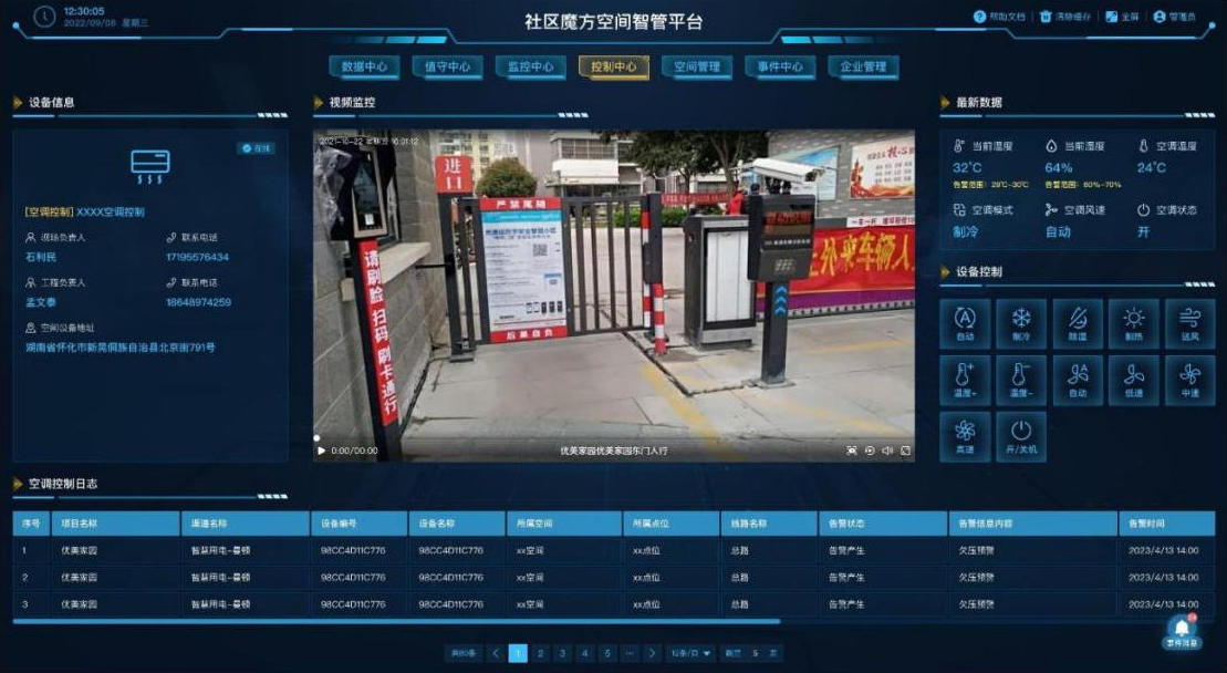 每个空间场景的控制主界面,可查看物联设备的数据、信息、日志,并进行远程控制。